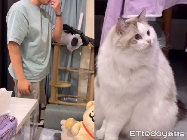 ▲又又:爸爸已經窮到要搶貓的飯了嗎?(圖/Threads@ling_xuan_02提供)