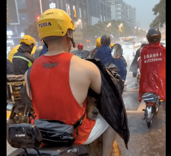 騎車突遇大雨!他拿出雨衣「先遮愛犬」 寧願自己被淋濕網共鳴:都懂~